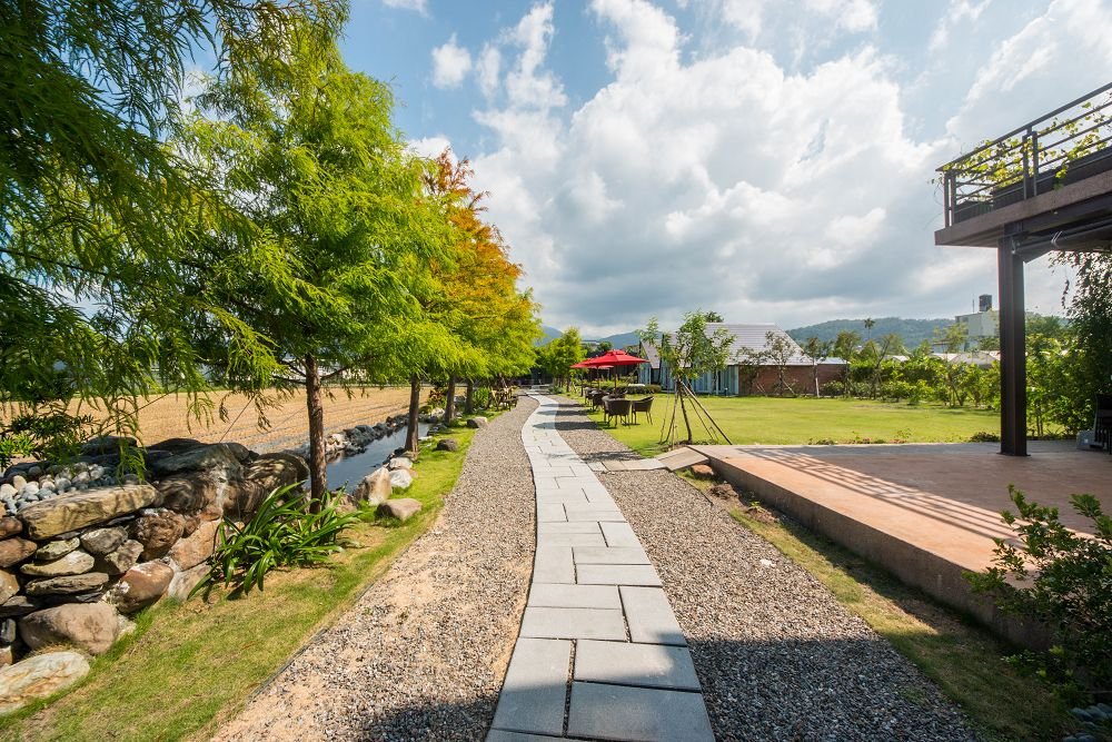 精心製作的早餐,600坪的庭園大草皮讓大人孩子嬉戲。園區內無毒蔬菜水果、隨季節體驗採收,自栽的香草茶無限暢飲。
